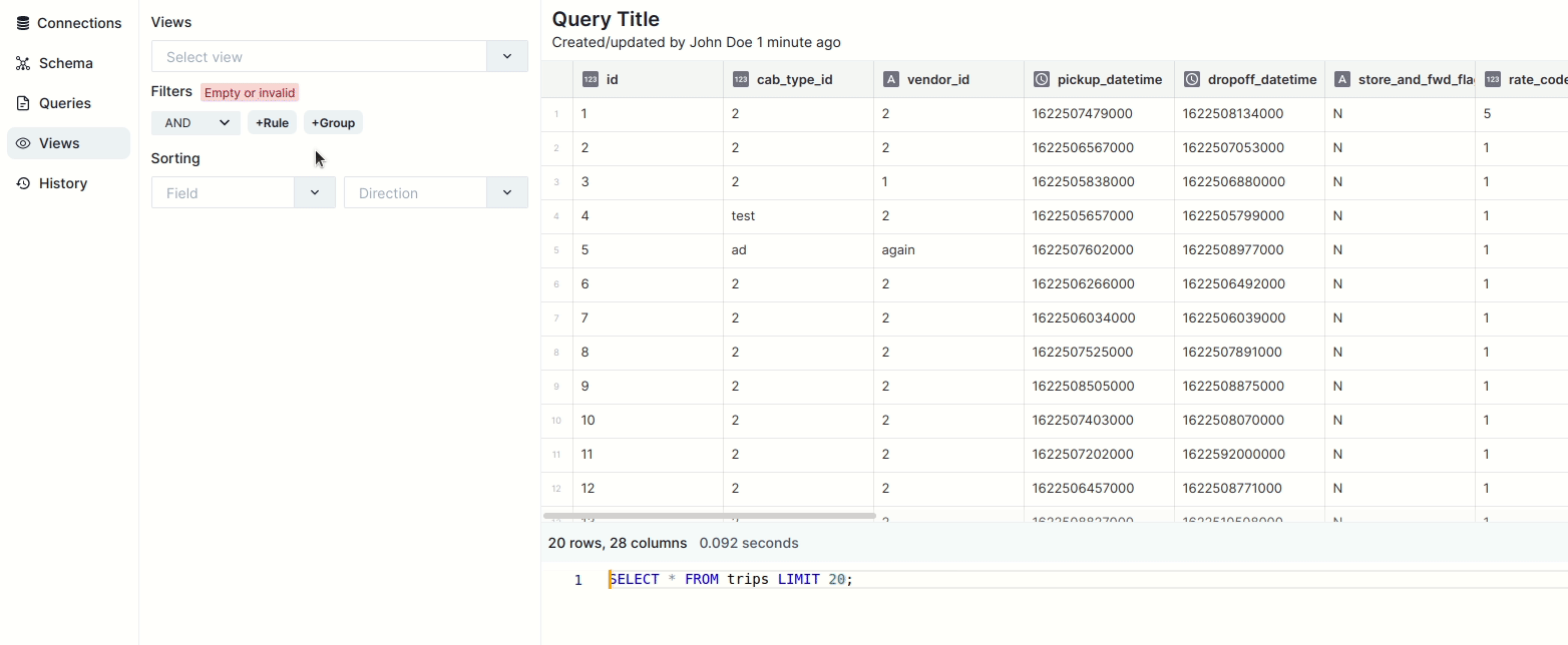 Filter, sort, and aggregate your data with a GUI, generating regular, performant SQL queries.